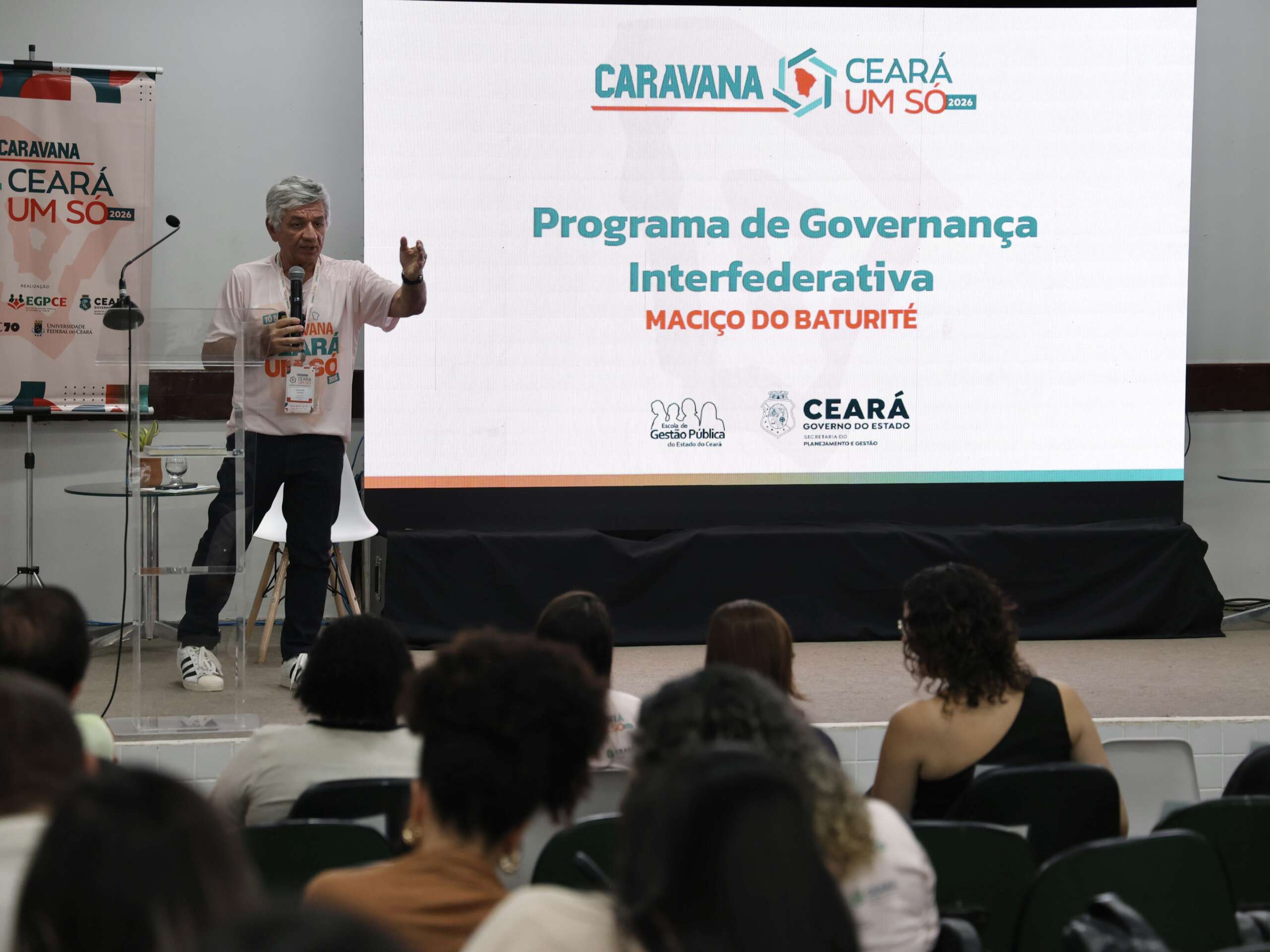 O diretor da Escola de Gestão Pública do Estado do Ceará (EGPCE), Saulo Braga, destaca o novo momento da iniciativa: “Estamos aqui na segunda edição das caravanas Ceará Um Só. Ano passado, percorremos as 14 regiões de planejamento do Estado e hoje iniciamos novamente pela região de Baturité, seguindo para Canindé. As caravanas de 2026 chegam com um novo formato, com um perfil mais técnico, abordando temas como reforma tributária, previdência, gestão de compras, gestão de pessoas com o eSocial e a novidade dos projetos para captação de recursos. Este ano, estamos mostrando na prática como captar recursos por meio de projetos”, afirma.